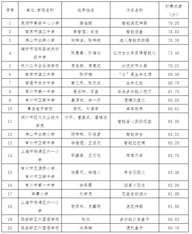 第三届中国3D打印创意设计大赛初赛已于近日落下帷幕,按照赛程安排,大赛组委会组织对所有参赛作品经过初选、网络投票和专家评审,已完成了初赛评选和成绩统计汇总工作。依据初赛成绩,本届大赛共有55个创新创意设计作品脱颖而出,晋级决赛,其中菁英组(青少年组)遴选出了20个优秀作品、精英组(高校组)遴选出了20个优秀作品、工业组遴选出了15个优秀作品。现将晋级决赛名单公布如下: