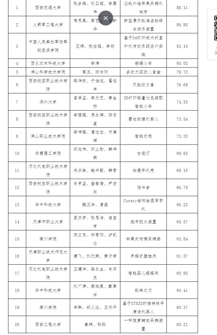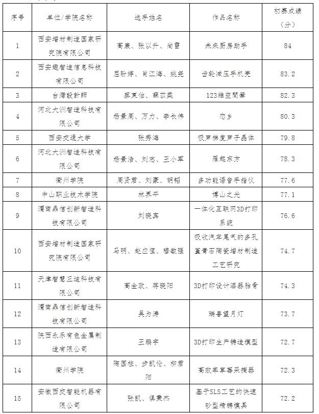 第三届中国3D打印创意设计大赛晋级决赛名单