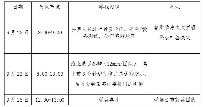 决赛为线上赛,采取线上展示答辩的形式。