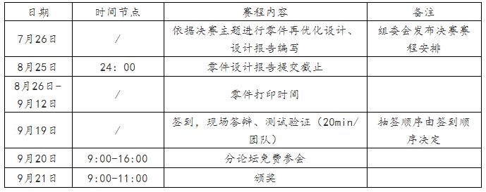 (2)考虑参赛选手受打印设备资源制约,决赛作品实物由组委会统一于8月25日决赛零件设计报告提交截止后代为免费打印,打印数据以选手最终提交的设计文件为准,不进行二次打印。